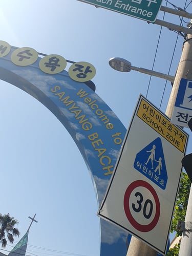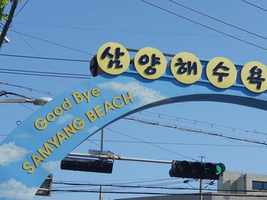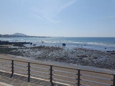 Après des jours à enchaîner les randonnées et les visites, on a enfin décidé de ralentir le rythme. Direction la plage de Samyang, l’une des rares plages de sable noir de Corée. Contrairement aux plages plus touristiques de Jéju, ici, l’ambiance était paisible, presque intimiste. Peu de monde, juste le bruit des vagues et le vent tiède qui nous caressait la peau.