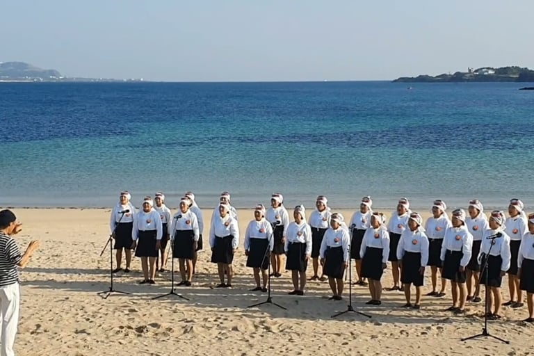 En parlant de Jéju, je me dois d'évoquer les haenyeo, auxquelles je consacre une page de ce site. Souvent considérées comme de véritables sirènes, les plongeuses haenyeo de l'île de Jeju, en Corée du Sud, sont réputées pour plonger depuis des siècles dans les profondeurs de l'océan, sans oxygène, afin de récolter des fruits de mer pour assurer leur survie.